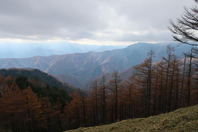 先週通った尾根が見えている。雲の下の中央少し右一番高い部分が多分前飛竜。そこから左に続く下りの尾根はとにかく素晴らしかった。前飛竜の右にあるはずの飛竜山は雲の上なので見えない。