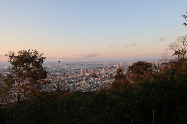 曙光に染まる三宮。