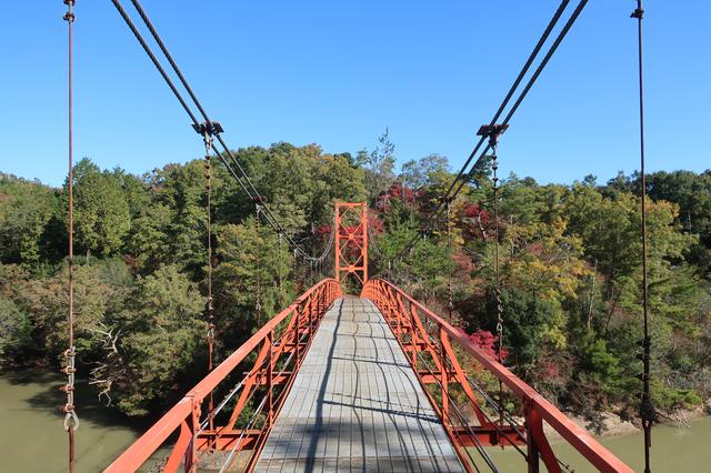 杉村公園の丸尾橋。そんなに高くないし、下が池なので怖くはないが、結構揺れる。