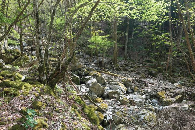 山上ヶ岳まで戻ってレンゲ坂谷を下る。ガレた急坂で落石の危険性が高い。危ないので急いで通過。