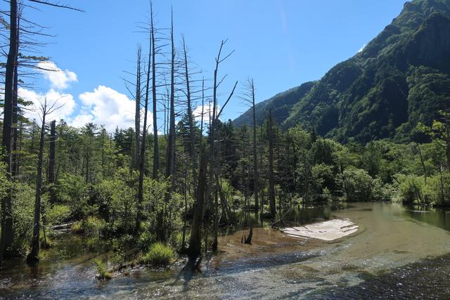 清流に立ち枯れの森。