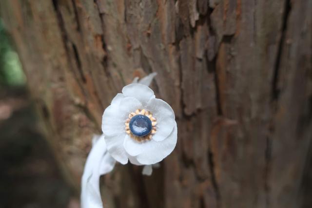 先端に一輪の花。サファイヤみたいな青い雌しべ。