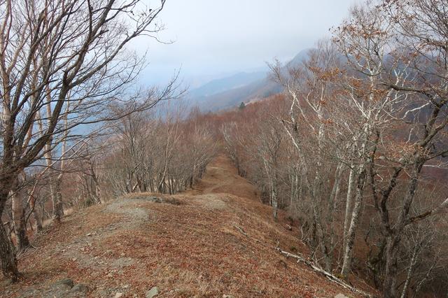 鷹ノ巣山から七ツ石山までの尾根は視界も開けている。晴天の日にまた来たいと思う。なお1500mを超えると紅葉は終わっている。