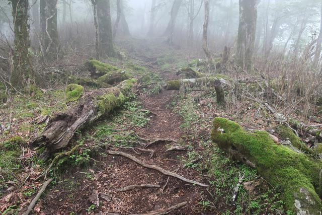 霧に巻かれて幽玄な雰囲気。景色はゼロ。何にも見えない。