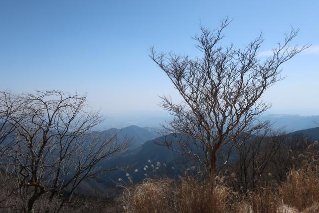 稜線に入ってから海側。モヤがひどくて何も見えない。冬なら江ノ島の方まで見えるのに。