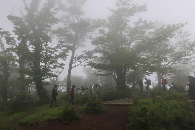 山頂は霧。溢れる緑に満足したのでもうどうでもいいや。