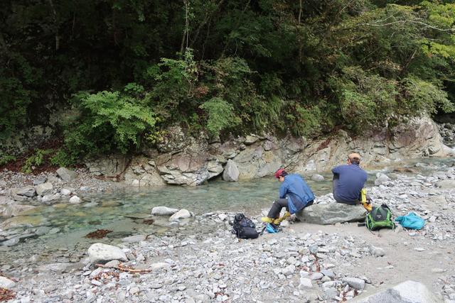 みんな靴を脱いで渡渉。私もここは無事超えたのだが、この後、ドボンとなってしまった。