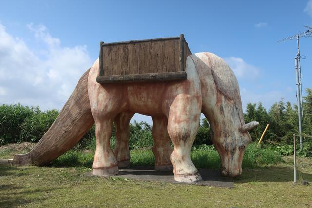 こちら山頂の展望台。トカラ馬がモチーフ。本物はもっとスマートです。