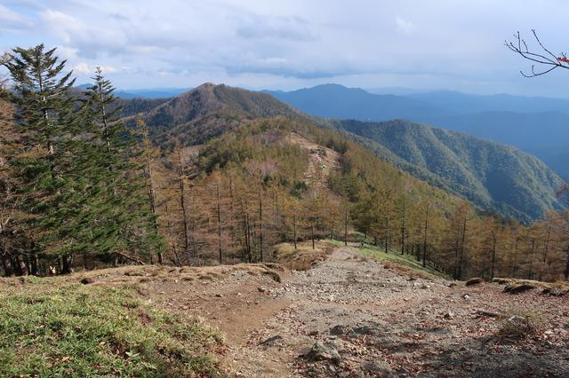 少し下るとまた晴れ。遠くに見えるはカラフルなテント村。