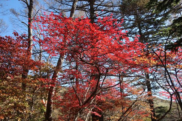 沿道の紅葉が綺麗だ。