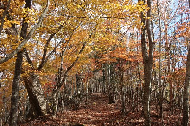 まぁ、所詮シカかイノシシだろう。クマにあったら嫌だなぁ。、、、と思っていたら、クマらしき大型の動物が林の中を逃げていくのを発見。その直後に今度は間近で猿と遭遇。時々、振り返りながら登山道をつかず離れず逃げていく。