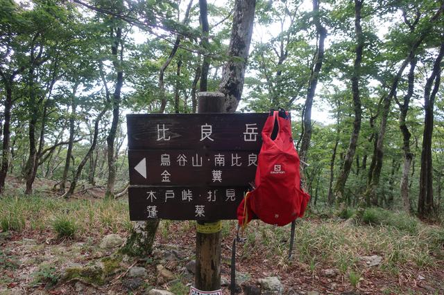 本当の山頂は縦走路から外れて数分行った先。なんにもないし展望も悪いので行く価値は低いです。