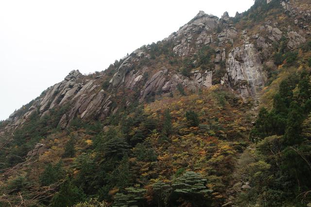 天候は曇りロッククライマーたちは岩壁に向かう。我々は当然登山道。いや、あんなとこ行ったら死にますって。