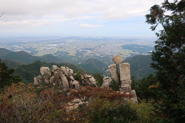 地蔵岩と伊勢平野。遠く伊勢湾の向こうには濃尾平野。