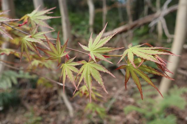 モミジの新芽は周辺部が赤いんだね。