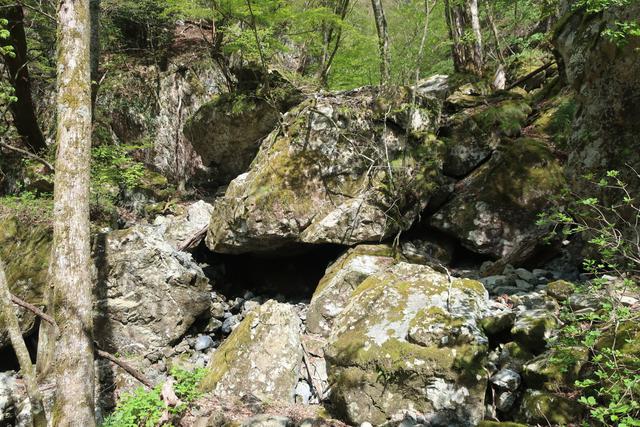 ここから水が流れ出していた。山上川の水源。沢に沿った登山道でキャンプ地まで戻る。