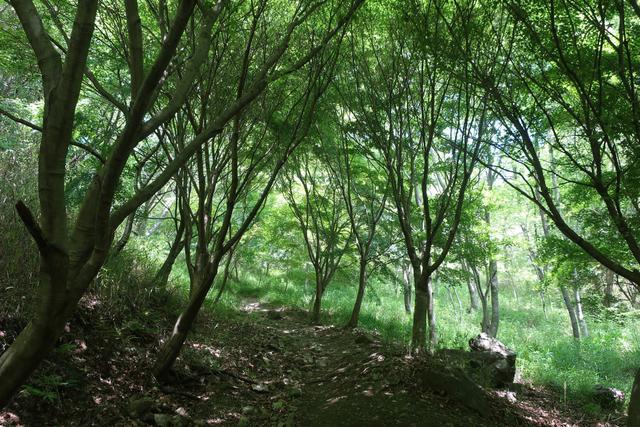 緑の道。蛙の大合唱。
