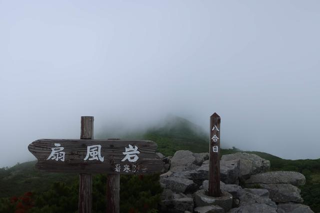8合目は景色も良くていい所。雪渓も見える。ただし残念ながら霧が出てくる。
