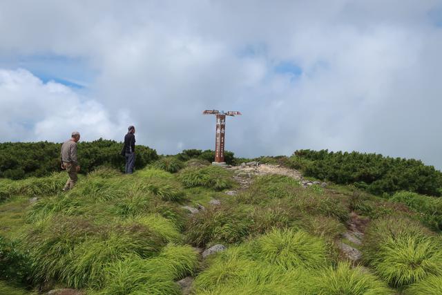 山頂の標識。 SSCCのジジィ二人がなんとなく絵になっている。