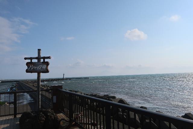 利尻島が霞んで見えている。北海道北端の西、ノシャップ岬。
