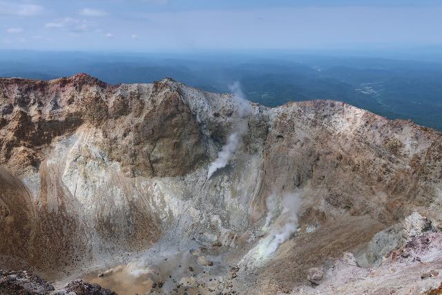蒸気の湧き出す噴火口は200メートルの断崖。