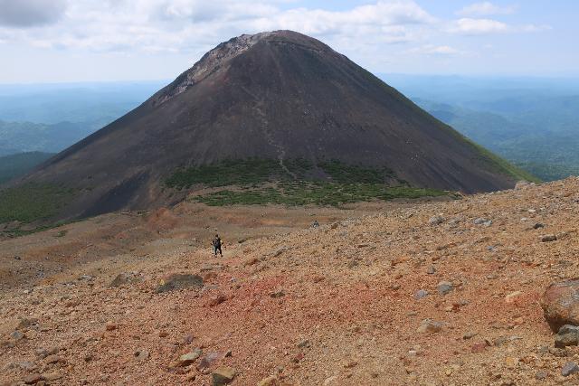 オンネトー側に下る。ザレていて滑りやすい。正面には迫力の阿寒富士。