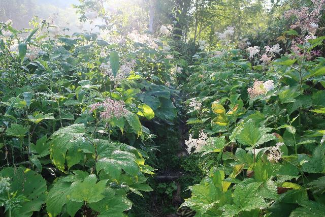 いきなり悪路。背丈以上ある叢の露を受けて濡れるし、足元は泥濘んでグチャグチャで靴も汚れる。