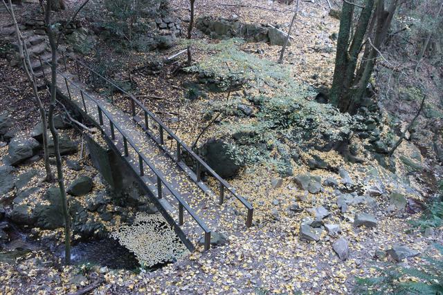 八幡谷。渓流はイチョウで埋め尽くされていた。