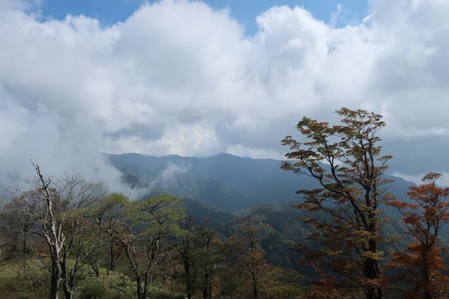雲が多いなぁ。これから歩く丹沢主稜。左の雲に隠れて盟主蛭ヶ岳は拝めず。