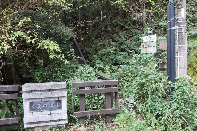 登山道入口は深いヤブの中。入って少し歩くとヒルよけスプレー(多分ただの塩水)がおいてあったので足元に噴霧。