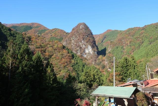 登山口。正面が稲村岩。そこから後方左に続くのが稲村岩尾根。