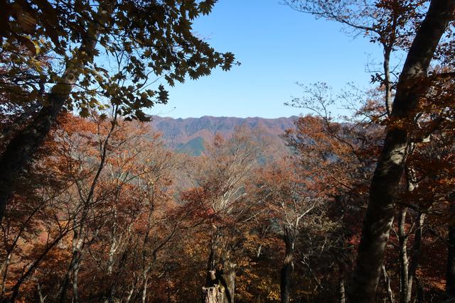 遠くの嶺(長沢背稜)も赤い。東京と埼玉の県境をなす。
