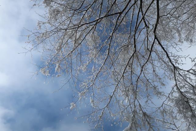 時折、雲居に晴れ間が覗く。枯れ木も満期の花のよう。