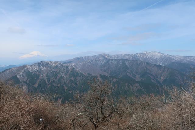 先週登った表尾根も雪。中央が塔ノ岳。富士は霞んでいる。
