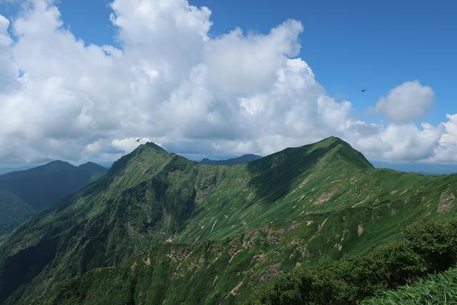万太郎山へと続く稜線が素晴らしい。ヘリコプターが飛んでる?、、、トンボです。谷川岳はトンボ天国でした。おかげでアブとかいないので快適です。何千匹と飛んでるのでちょっと多すぎだけど。