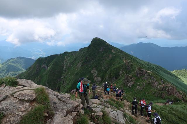 オキノ耳からトマノ耳を望む。大渋滞です。