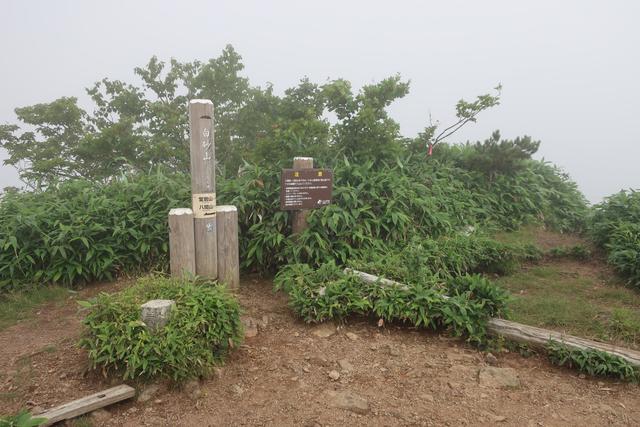 白砂山山頂。霧でなんにも見えない。しかも強風で怖かったよ。