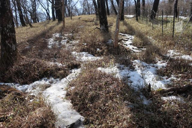 道の窪みにだけ雪が残っている。靴がドロドロ。