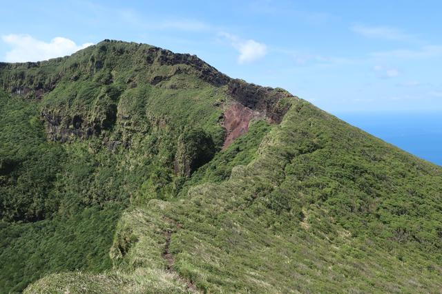道は火口から少し離れているけど、海からの風が強烈なので時折フラッとする。怖いって!