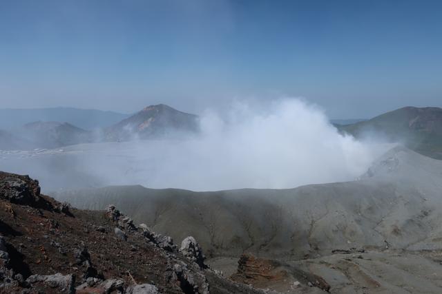立ち昇る水蒸気。阿蘇は今もダイナミックな活火山。