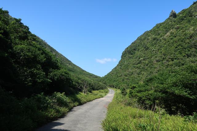 山に挟まれた一本道を進む。