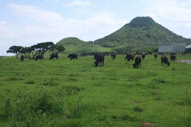 女神山山麓で優雅に過ごす牛たち。子牛の生産がメインみたいだから肉牛になるわけではないのかな。大自然の中で屠殺されることもなく一番お気楽な家畜かもしれない。